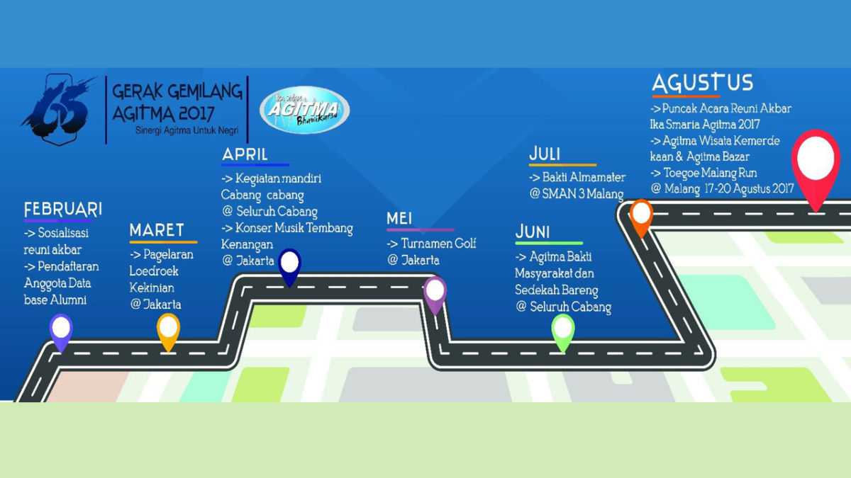 Perencanaan pun dilakukan. Bagaimana menyusun organisasi sebagai pengarah maupun panitia pelaksana. Termasuk pengelolaan pendanaannya. Rangakaian itu dikemas dalam gerbong : “Gerak Gemilang Agitma 2017”.