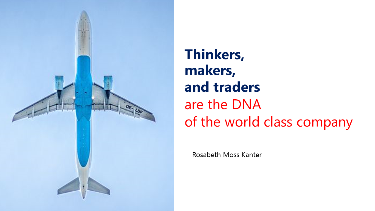 Salah satu tokoh manajemen yang merumuskan pengertian World Class Company adalah Rosabeth Moss Kanter, seorang Guru Besar pada bidang strategi bisnis dari Harvard Business School. Ia akrab dipanggil dengan Prof. Kanter. Guru besar tersebut merumuskan minimal ada dua kualifikasi yang harus dipenuhi oleh sebuah perusahaan kelas dunia.