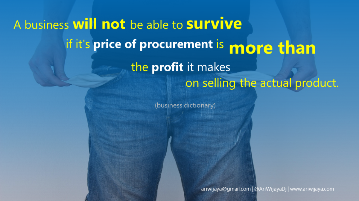 Bagaimana pun, ketika procurement gagal memperoleh barang dan/atau jasa dengan harga yang tepat, waktu yang sesuai, mutu yang pas, maka dapat dipastikan perusahaan gagal bertahan. Sangat krusial fungsi ini.